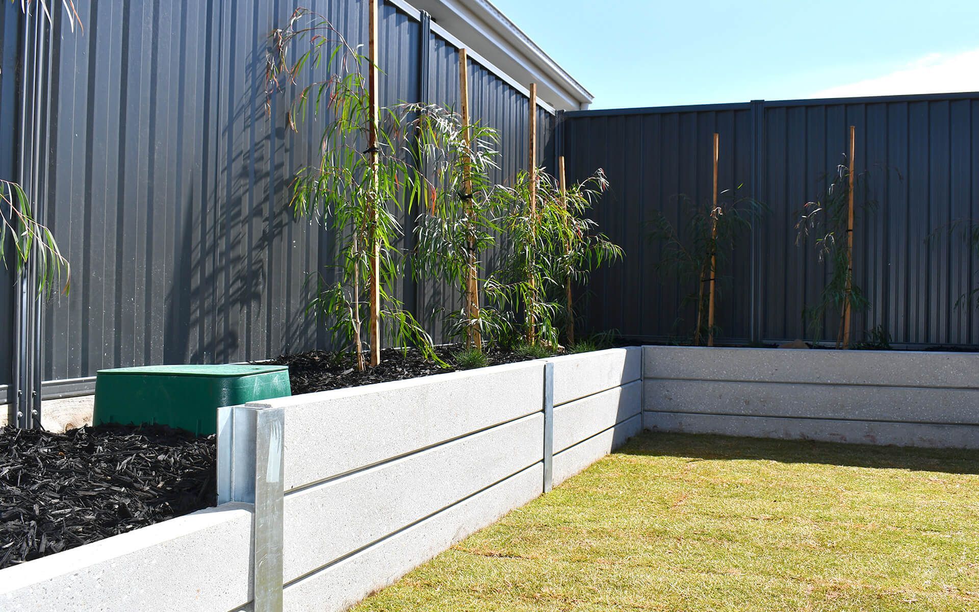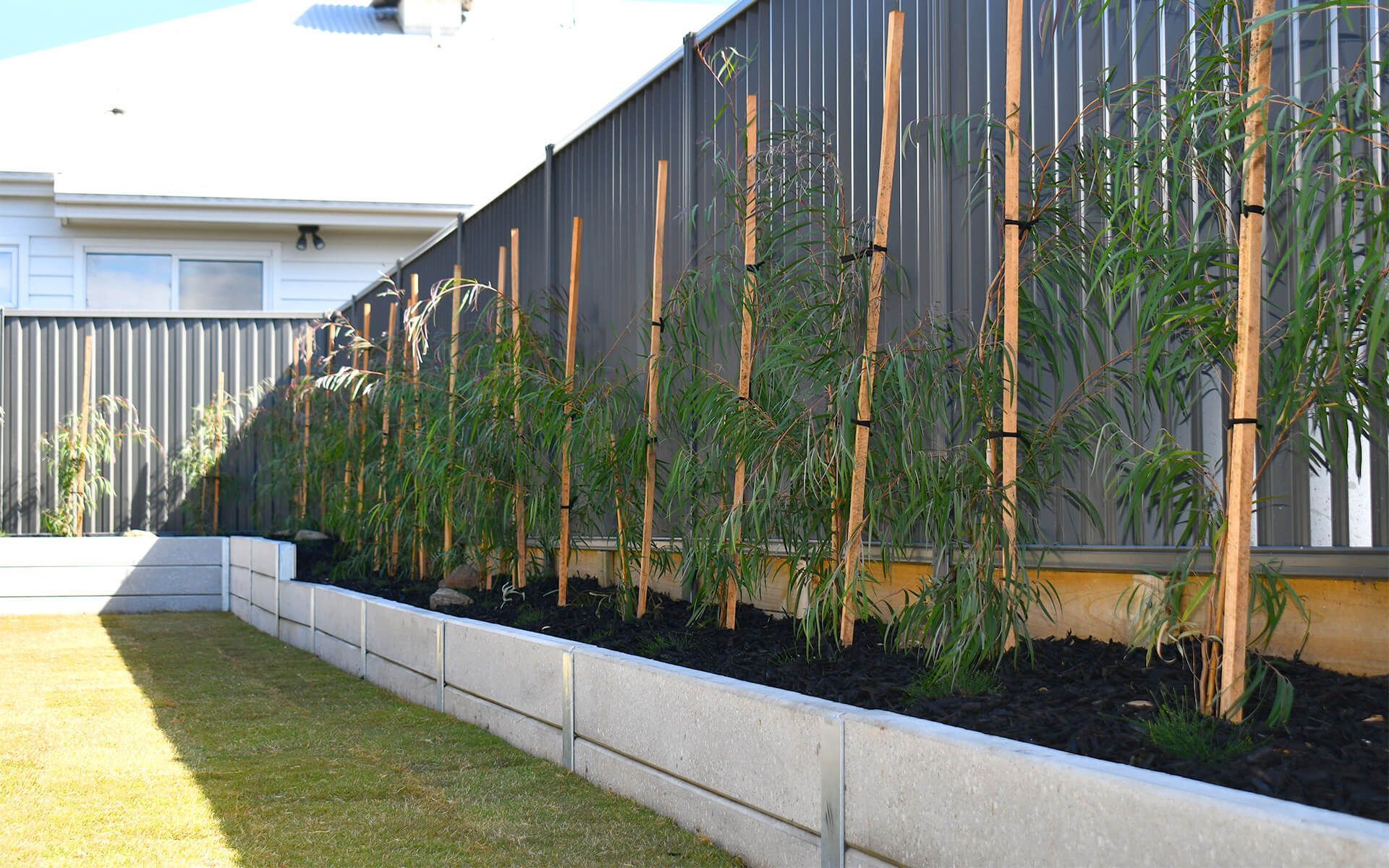 Soil provided by the Soil Yard, Turf provided by Anco Turf, Irrigation by Ultimate Pumps and Irrigation, Plants from All-seasons Nursery, Natural Steppers provided by Buildpro Ballarat.