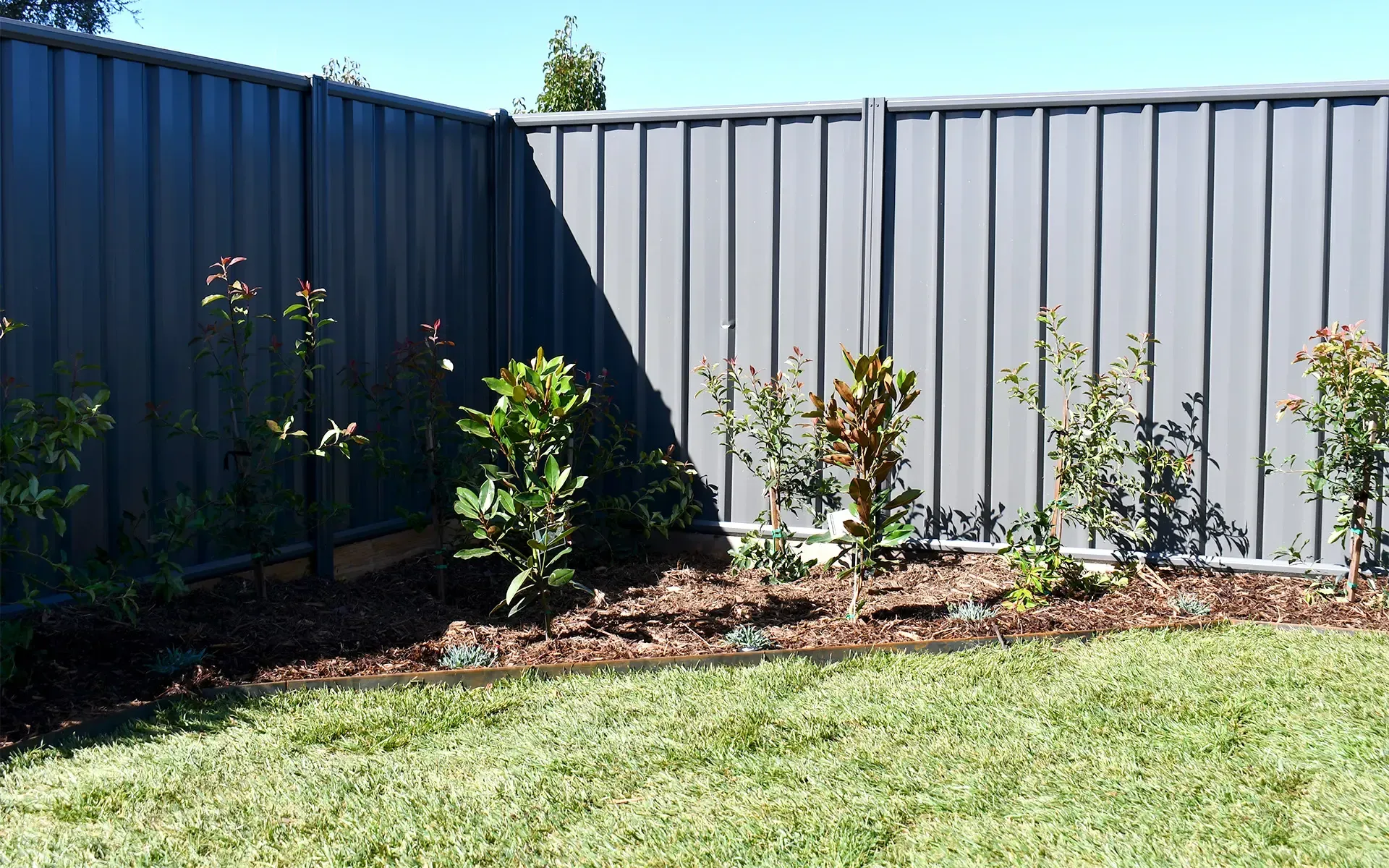 Steel garden bed edging was used to give clean, crisp lines between pathways and planting zones, ensuring long-term durability and a contemporary look. The planting scheme includes a variety of screening plants for privacy and flowering plants to bring seasonal color and softness to the space.