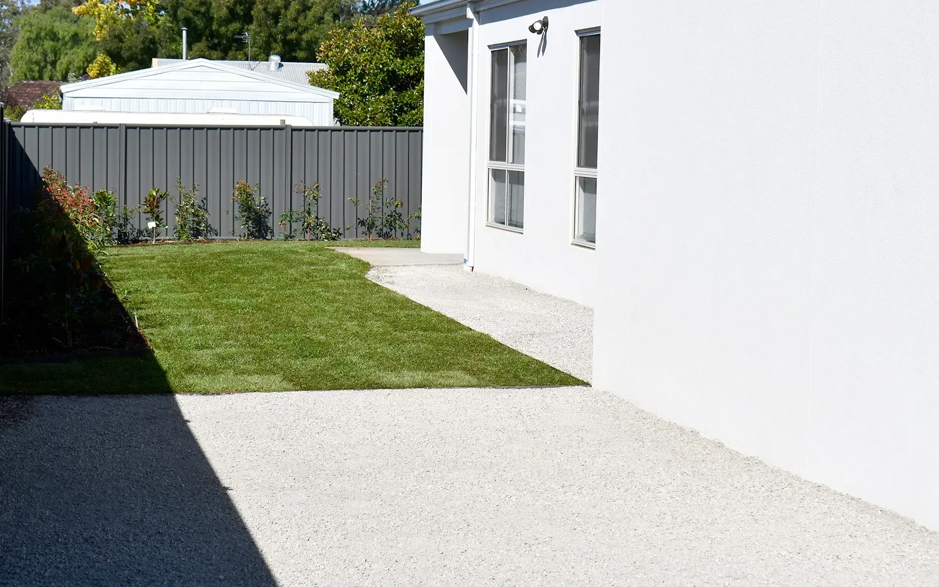 This Maryborough landscaping project brings together functionality and aesthetics to create a modern, low-maintenance outdoor space.