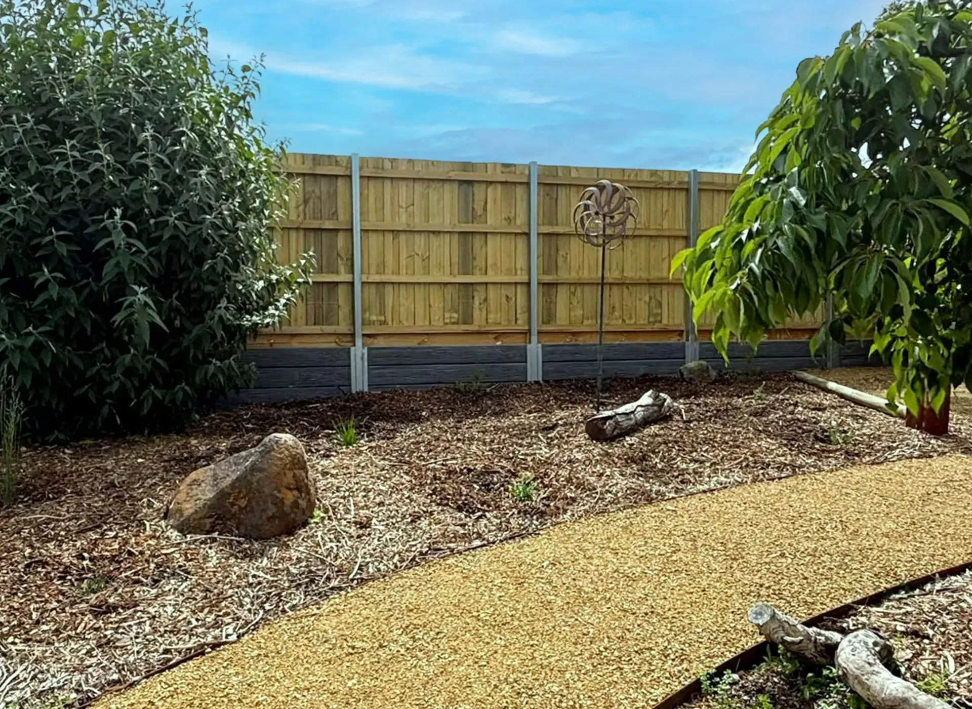 The works included the installation of clean, durable gravel pathways finished with steel edging, along with new mulch garden beds. We carried out full soil preparation before planting, ensuring the new plants have the best possible start, and completed a thorough tidy-up to leave the space looking polished and complete.