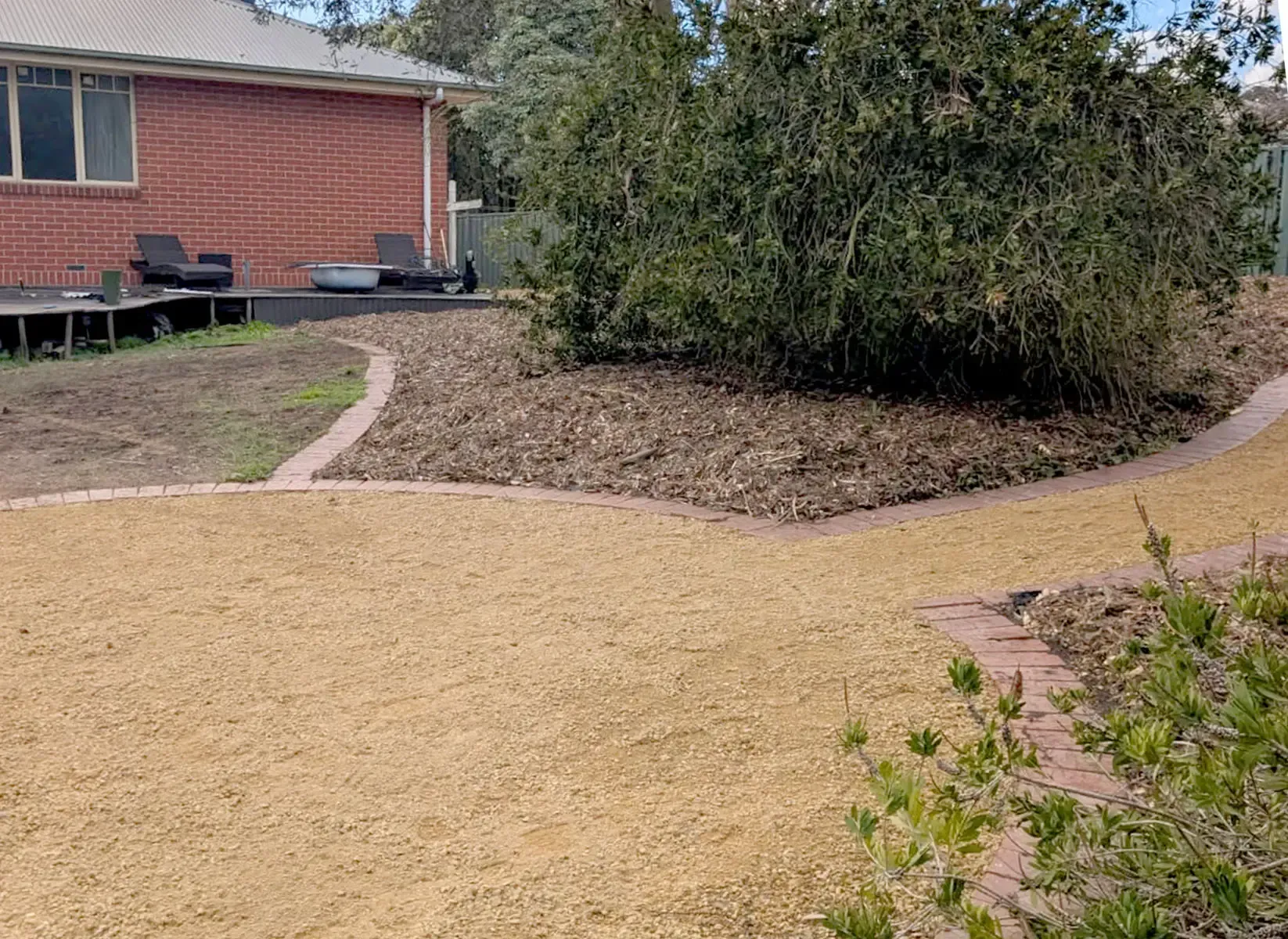 We removed five truckloads of green waste to reset the space, dug out the existing paths and relaid them with new material, turned the soil, and added organic matter to improve long-term soil health.