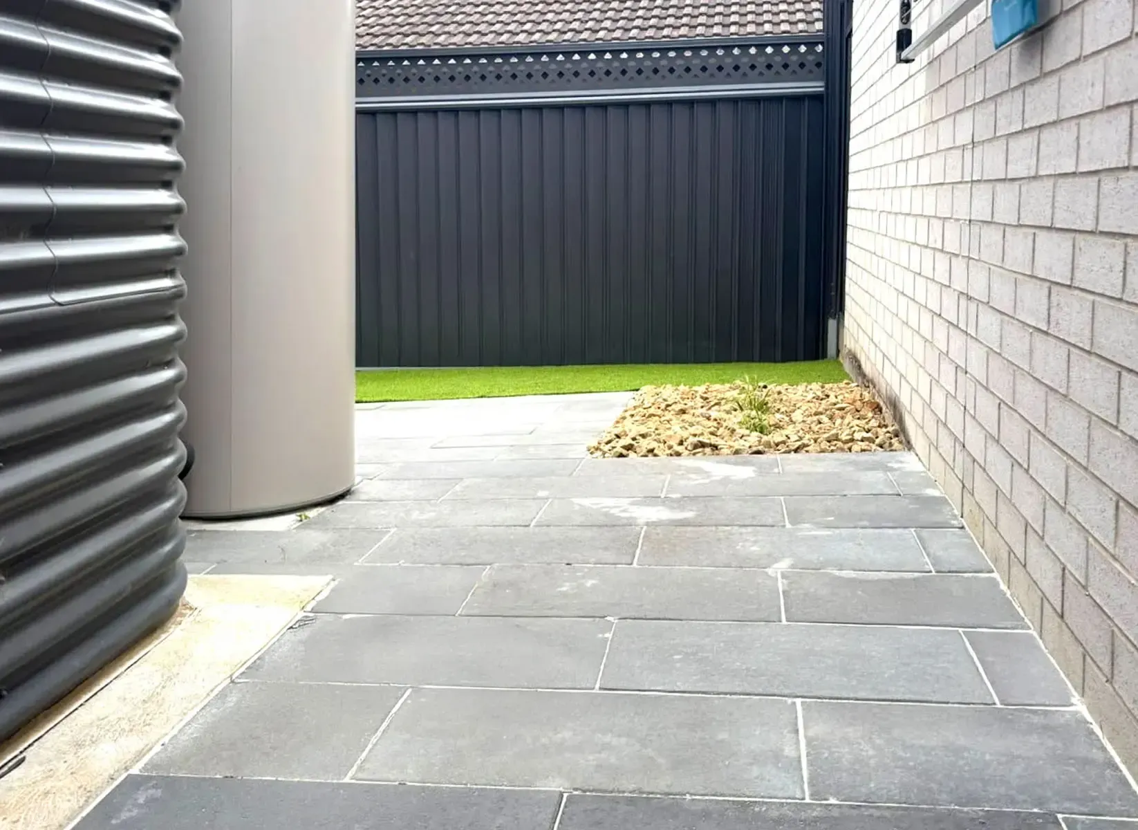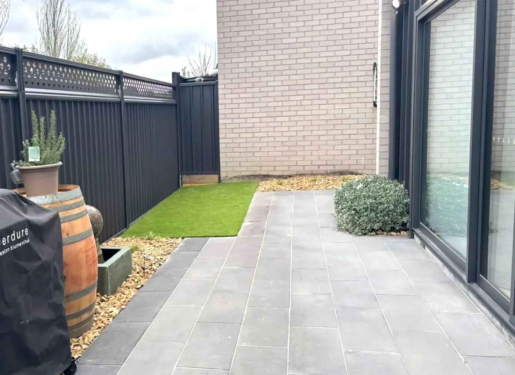 Ballarat North townhouse landscaping project featuring the careful removal of deteriorated paving and replacement where required. Existing pavers in good condition were blended with new materials for a seamless finish.