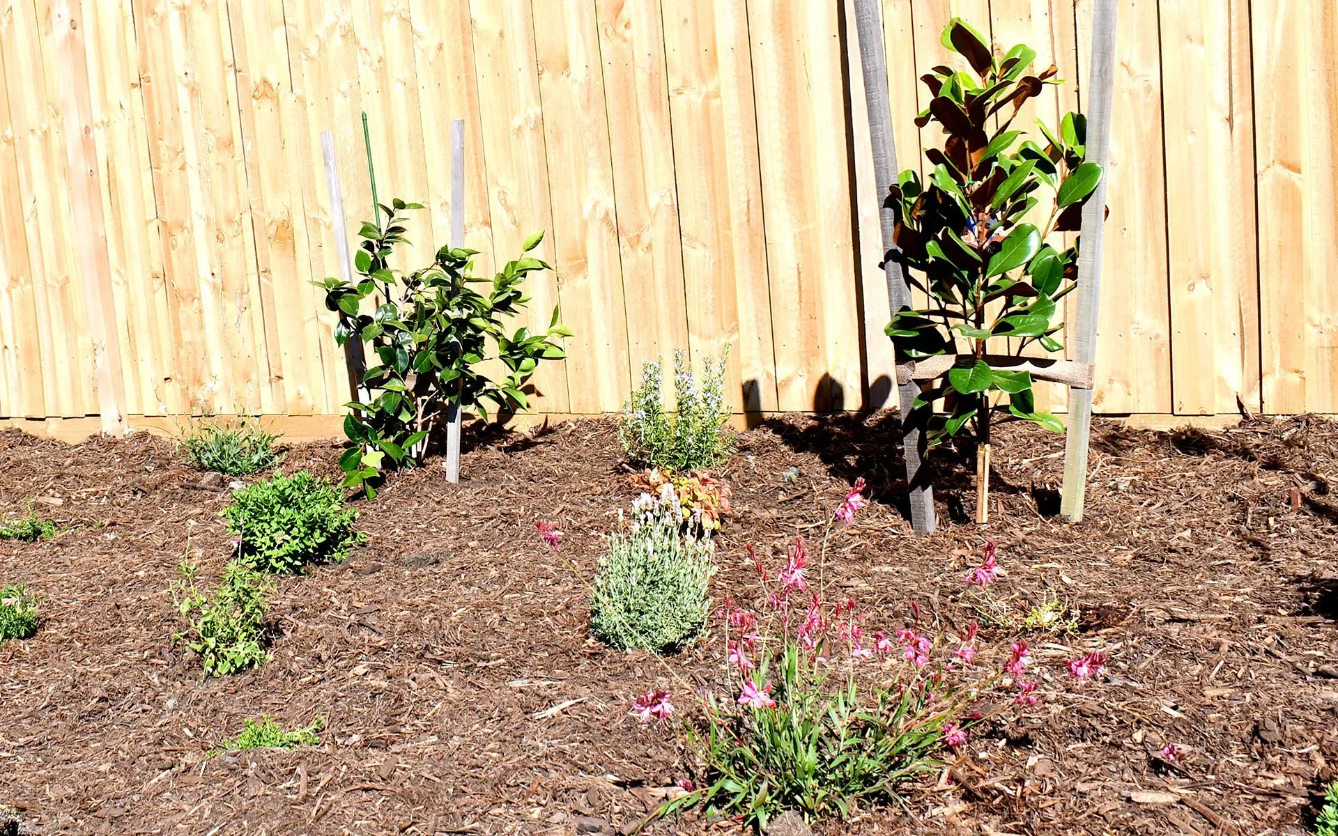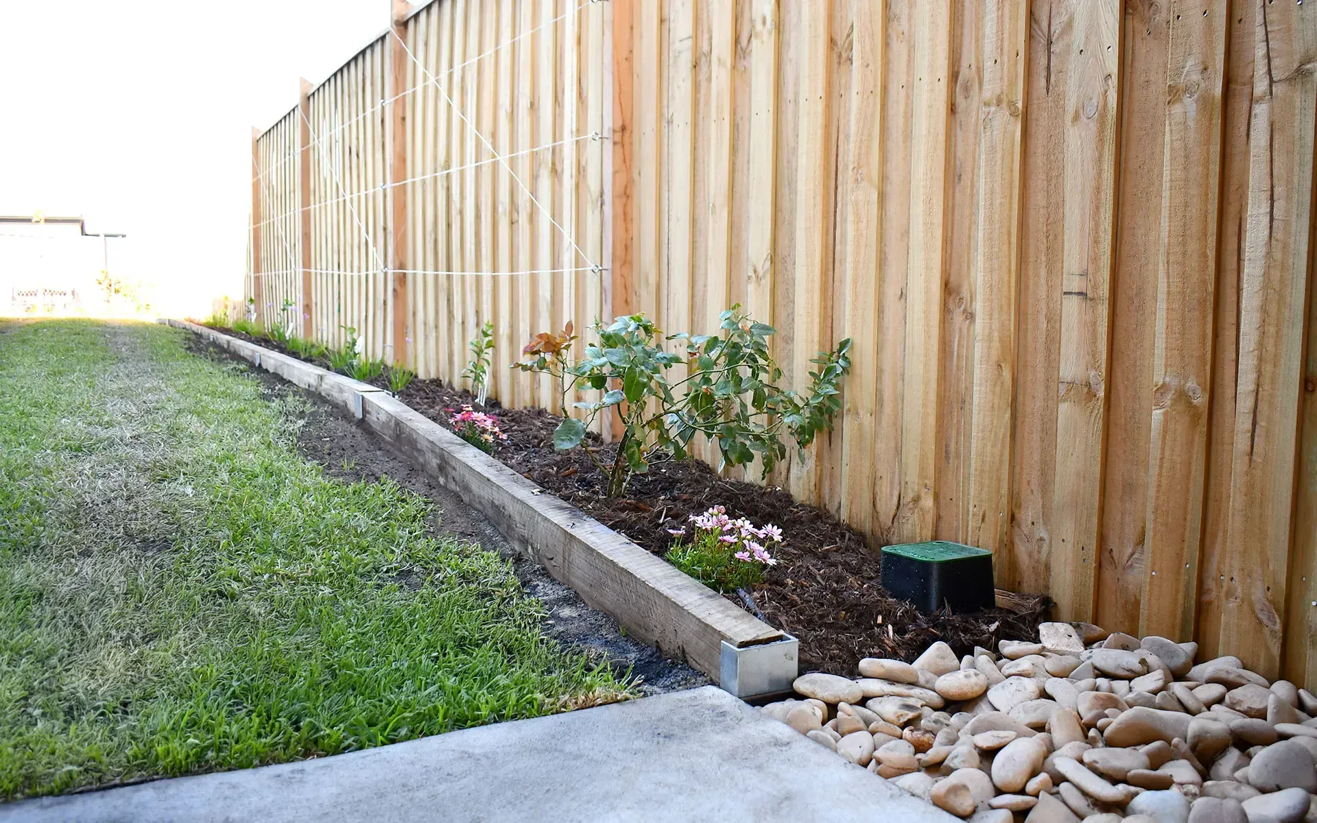 To promote sustainability, a water-efficient dripper line system was installed, delivering moisture directly to plant roots to minimize water waste. This is paired with a layer of water saver mulch, which helps retain soil moisture, regulate temperature, and suppress weeds — ensuring the garden stays healthy and vibrant with minimal maintenance. The end result is a balanced, eco-friendly space that combines style, functionality, and long-term sustainability.