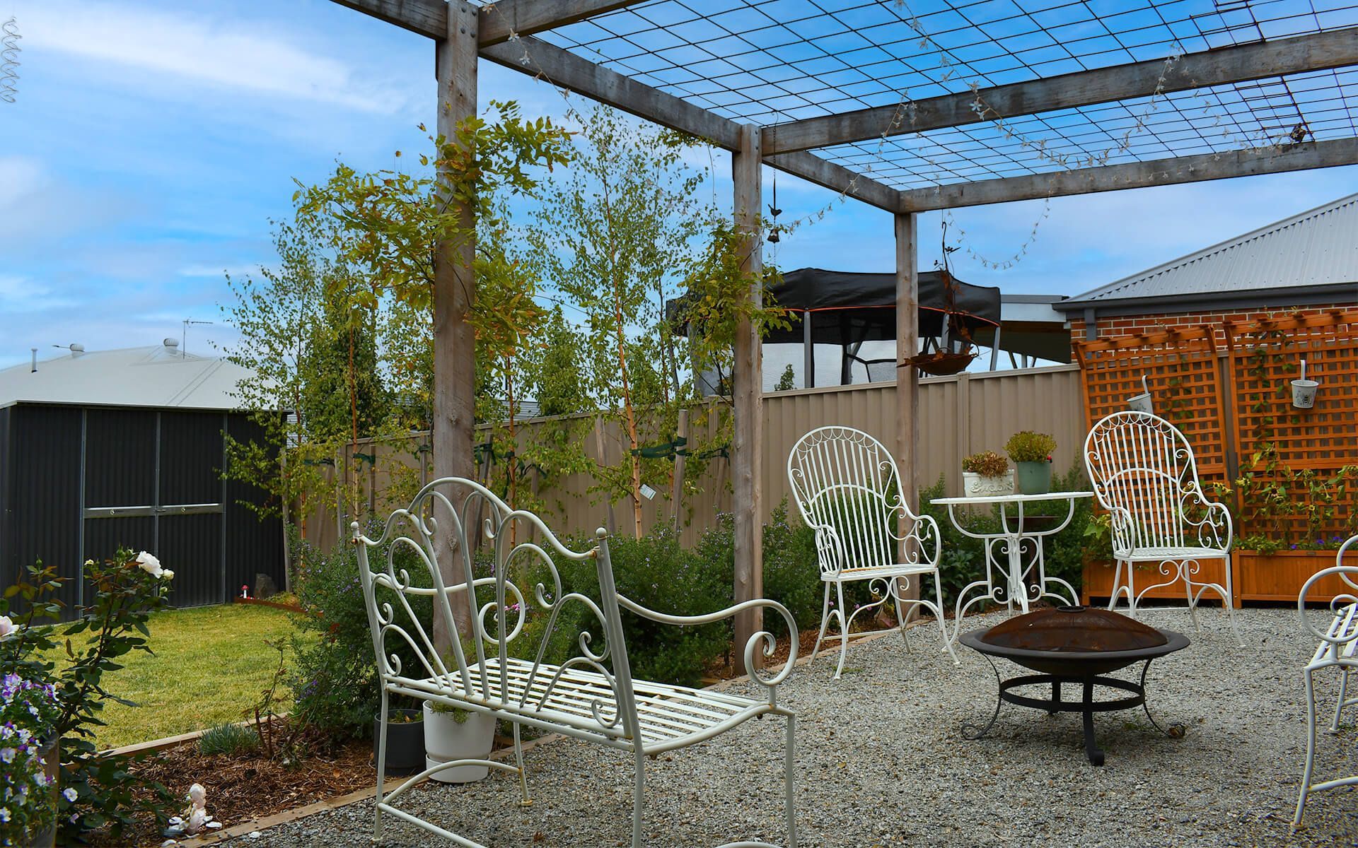 Relax under the stunning pergola, the perfect centrepiece for outdoor gatherings and moments of serenity.